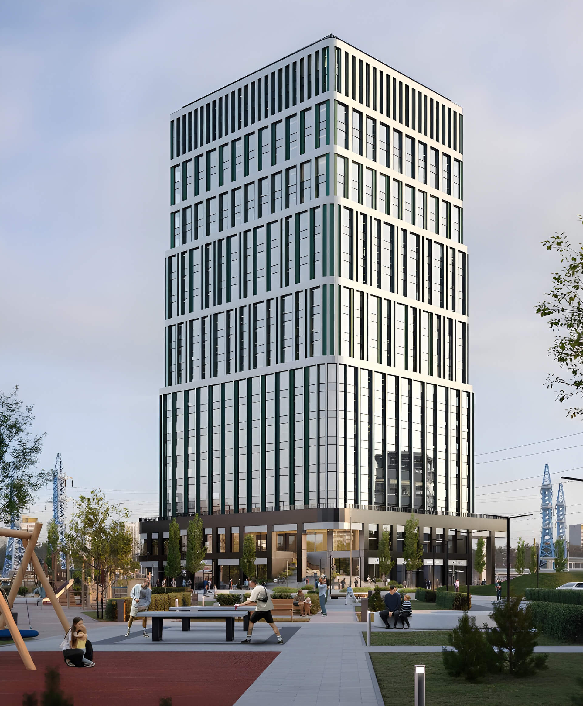 Окружающая инфраструктура включает жилые кварталы, кафе, супермаркеты и коммерческие точки ритейла, парковки. При этом в шаговой доступности появится ландшафтный парк с пешеходными маршрутами — идеальное место для работы и отдыха. Наличие собственных площадей под кафе и рестораны в комплексе также усиливает удобство для арендаторов.